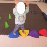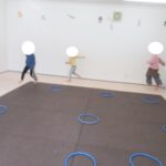コーンでアヒルタッチ、カラー石わたり、平均台クマ歩き、フープジャンプでサーキットを回りました。