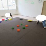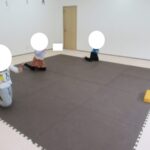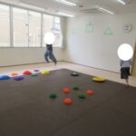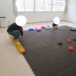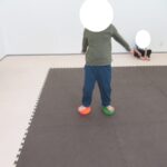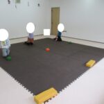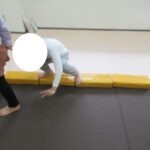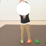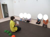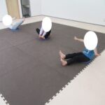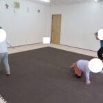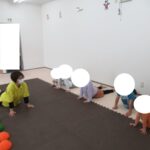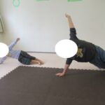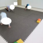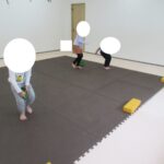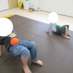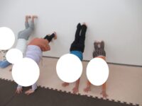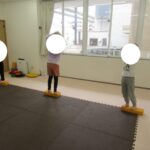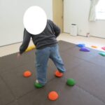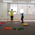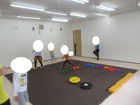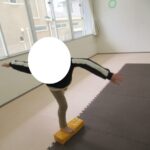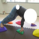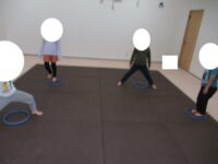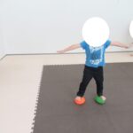 バランスボードでポーズキープ、カラー石でクマ歩き、半円ボールでバランスポーズ、平均台カニ歩きにチャレンジ!