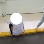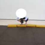 バランスボードは肩の位置で手をキープ、平均台カニ歩きはしっかり腰を落として進もうね。