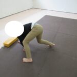立膝で移動して、平均台にある半円ボールを持ってポーズキープ!