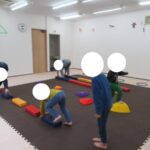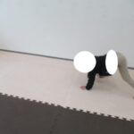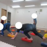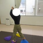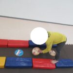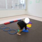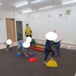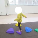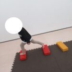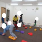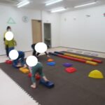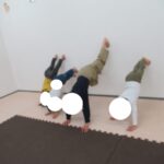 カラー石でクマ歩きは手足を大きく動かして進み、最後の高い石は煙突ポーズ!