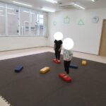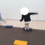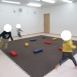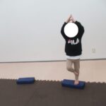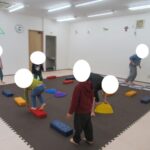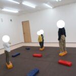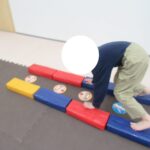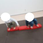 平均台でもお尻の高さを維持したまま渡ろうね。
