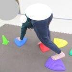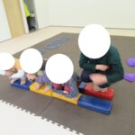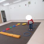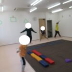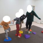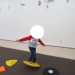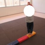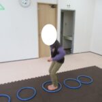 バランスボードやフープジャンプ、カラー石、平均台を回りました。落ちないようにしっかりと気をつけて~!