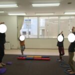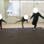 先生の合図で、指定されたカラーの平均台へ進みポーズ!飛行機ポーズも煙突ポーズも素敵♪