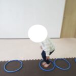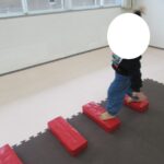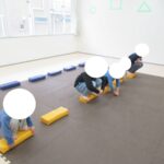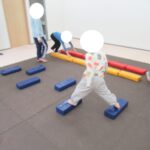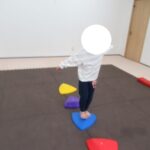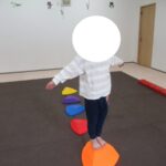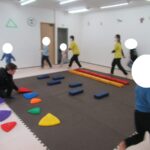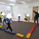 先生が指定した色の平均台へ進みます。平均台の上でポーズキープすることは意外と難しいのですが、真剣に頑張りましたね。