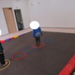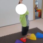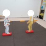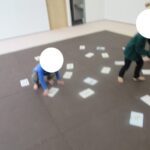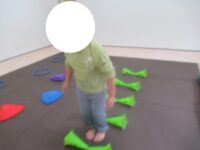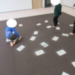 みんなで話し合って順番を決めたら、スタート!置きに行く時は、かかど歩き、帰りはつま先歩きも、お友達と話し合って決めました。